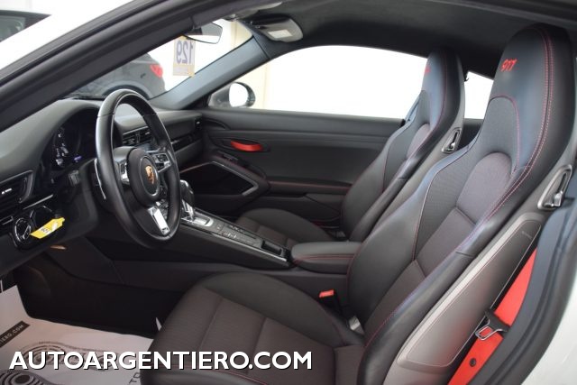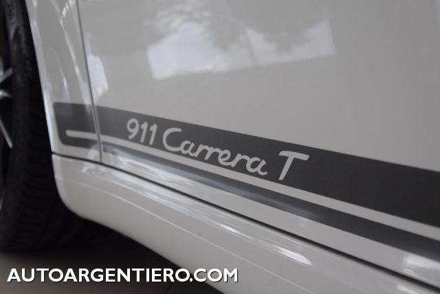 20 kg più leggera della Carrera, uguale motore boxer turbo da 370 cavalli, la Touring sfoggia le sospensioni PASM di serie, un'altezza da terra ridotta, cerchi della Carrera S e le quattro ruote sterzanti dalla gamma TurboE Touring significa un assetto con sospensioni PASM di serie, corpo vettura 20 millimetri più vicino all'asfalto, cerchi da 20" pollici dalla Carrera S con finitura Titan grey, ma soprattutto un differenziale posteriore a blocco meccanico, rapportatura del cambio accorciata e leva anch'essa più corta. Per avere il concetto più puro della 911 Carrera Touring è bene rinunciare ai due strapuntini posteriori e all'infotainment PCM, due possibilità offerte ai guidatori più radicali. Fa un certo effetto ritrovare una plancia spoglia, con un ampio vano portaoggetti là dove, oggi, è impossibile non trovare un display, un tablet, qualcosa da videogame praticamente in qualsiasi segmento di mercato. Risparmiare 20 kg - rapporto peso-potenza migliore, a 3,85 kg/cv - è operazione che passa dall'adozione di un lunotto con vetro più sottile, lo stesso in sostituzione dei finestrini laterali posteriori; la presenza di una minor quantità di materiale fonoassorbente contribuisce alla riduzione di peso, al pari delle fibbie interne a tirante. La colorazione riprende tanto le cuciture quanto la fascia centrale sui sedili sportivi a regolazione elettrica e le cinture di sicurezza. Rivestimento in Sport-Tex, a scelta anche in Guards Red o GT Silver. Finitura nero lucido in plancia, sedili a richiesta con guscio e ad alto contenimento; a richiesta, direttamente dal mondo Porsche 911 Turbo e in esclusiva per Carrera T - non essendoci tale optional sulla 911 Carrera - arrivano le ruote posteriori sterzanti, utile aggiunta per incrementare le doti dinamiche.