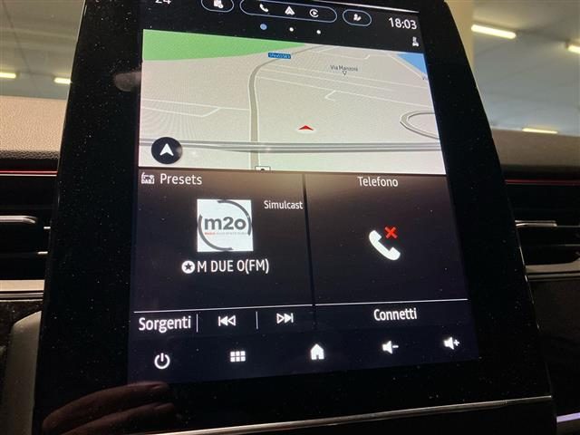 Altre opzioni: Tetto Nero con retrovisori esterni in nero lucido;Accensione automatica dei fari e tergicristalli con sensore di pioggia;Armonia interna in nero titanio;Assistenza al mantenimento della corsia (Lane Keep Assist);Assistenza alluscita dal parcheggio (Rear Cross Traffic Alert);Avviso attraversamento linea di corsia (Lane Departure Warning);Avviso distanza di sicurezza (Distance Warning);Badge R.S. line sul parafango anteriore;Battitacco specifico con griffe Renault Sport;Cambio e-shifter;Caricabatteria smartphone a induzione;Cerchi in lega 18 Silverstone esclusivi R.S. line con accento rosso;Chiamata demergenza;Cielo del tetto nero;Commutazione automatica degli abbaglianti / anabbaglianti;Digital Driver Display 7";Doppiofondo bagagliaio con separatore removibile (extra spazio sotto il pavimento solo per benzina);Easy Access System II (apertura/chiusura allavvicinamento);Easy Park Assist (parcheggio a mani libere);Eco Drive;Fari design con firma C-Shape allanteriore e effetto 3D al posteriore;Frenata demergenza attiva (AEBS) con riconoscimento pedoni e ciclisti;Freno di stazionamento elettrico con funzione auto-hold;Funzione antislittamento ASR;Kit riparazione pneumatici con scatola attrezzi;Modanature di protezione laterale in metallo scuro;Paraurti anteriore sportivo con lama aerodinamica F1;Parking camera posteriore;Pedaliera in alluminio;Privacy Glass (Vetri laterali posteriori e lunotto oscurati);Renault MULTI-SENSE con 3 personalizzazioni di guida e Ambient Lighting a LED;Retrovisore interno fotocromatico senza cornice;Retrovisori esterni elettrici, riscaldati con sensore di temperatura, ripiegabili automaticamente al;Retrovisori esterni in nero lucido;Sedili anteriori con regolazione elettrica (e regolazione lombare per conducente);Sedili anteriori riscaldabili;Sedili esclusivi R.S. line nero con impunture rosse;Sellerie in pelle/Alcantara;Sensore angolo morto;Shark antenna;Sistema audio Arkamys con 6 altoparlanti;Ski anteriore e posteriore in metallo scuro con doppio scarico cromato;Smartphone replication compatibile con Android Auto e AppleCarPlay;Striscia decorativa specifica in carbon look sui pannelli porta e sul cruscotto