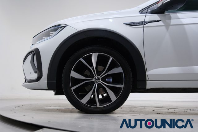 VOLKSWAGEN Taigo 1.0 TSI 110 CV DSG R-Line del 2023 è un SUV coupé compatto dal design sportivo e moderno, pensato per offrire comfort, tecnologia e sicurezza, risultando adatto anche ai neopatentati. Il motore 1.0 TSI da 110 CV abbinato al cambio automatico DSG garantisce una guida fluida ed efficiente, supportata da sistemi di sicurezza avanzati come ABS, ESP, controllo trazione, airbag multipli, Isofix, frenata d?emergenza assistita, Adaptive Cruise Control, mantenimento di corsia, sistema di avviso di distanza e riconoscimento della stanchezza. Gli interni in allestimento R-Line sono curati e sportivi, con volante in pelle multifunzione, bracciolo, climatizzatore automatico, cruise control, limitatore di velocità e comandi vocali. La dotazione tecnologica comprende touch screen, sistema audio con sound system, Apple CarPlay, autoradio digitale, Bluetooth, USB e vivavoce, per un?esperienza di guida sempre connessa e intuitiva. Il look esterno è valorizzato da cerchi in lega, fari full LED con luci diurne e fendinebbia, mentre il tetto panoramico in cristallo con tettuccio apribile aggiunge luminosità e carattere. Park Distance Control, sensori di parcheggio anteriori e posteriori, sensore di luce, hill holder, ruotino di scorta e start/stop automatico completano una dotazione ricca e completa. Un SUV compatto dallo stile dinamico, ideale per chi cerca tecnologia, comfort e un design distintivo.