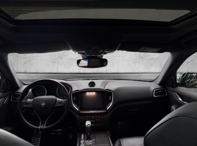 Vetri laminati anteriori, isolanti termicamente ed acusticamente, 1 Presa 12V nel bagagliaio, Airbag ginocchia lato guida, Batticalcagno esterno in acciaio con scritta Maserati, Cinture di sicurezza anteriori con reg. manuale dell'altezza, pretensionatori e limitatori di carico, Controllo altezza proiettori, Manuale guida rapida, DVD per consultazione su MTC, MTC Plus - Maserati Touch Control Plus, Orologio Maserati collocato al centro plancia con fondello blu e finiture cromate, Pomello del cambio rivestito in pelle con pulsantiera controllo funzioni dinamiche della vettura, Retina porta oggetti sul fianco del baule, Sistema Audio con 8 speakers, Sistema Key-less Entry, Specchio interno elettrocromico con Auto High Beam Assist, Tappetini in velour, Tunnel centrale con media box, 2 porta bicchieri e presa da 12V, Electronic Power Steeringwheel (EPS), Finiture interne in plastica lucida Dark Mirror, Fari Full LED, Regolazione elettrica dello sterzo, Pedaliera sportiva in acciaio inox, Volante Sportivo, Calandra con cornice e listelli verticali cromati, maniglie porta cromate, logo su montante C, Comando Sport: set-up sportivo (gestione motore, acceleratore, MSP, sound scarico, trasmissione), Freno di stazionamento automatico temporizzato per partenze in salita (Hill Holder), Sensori di parcheggio, Palette cambio al volante in Alluminio, Rivestimento in pelle estesa (Sedili + Plancia), Sedili Sportivi ant. reg. elettr. (8 vie), Skyhook - Sospensioni a controllo elettronico, Kit riparazione pneumatici con compressore, Impianto Audio Sound System Base (8 speakers), Tachimetro analogico (sist. metrico), Sovratappeti interni, Fascioni anteriori e posteriori sportivi, Differenziale auto bloccante, Finiture esterne Chromeline, Sensori crepuscolari con attivazione aut. proiettori, Chiave con transponder, Chiusura centralizzata, Immobilizzatore, Appoggiatesta posteriori, Sedile guida regolabile in altezza, Retrovisori elettrici, Climatizzatore automatico bi-zona, Cruise control, Bracciolo centrale anteriore con vano illuminato, Airbag frontali a doppio stadio, airbag laterali, airbag protezione testa, Cambio automatico-sequenziale ZF a 8 rapporti, a leva e modalità manuale (attivabile con pulsante), Comando I.C.E.: software specifico per il miglior contr. dinam. della vett. e riduzione dei cons