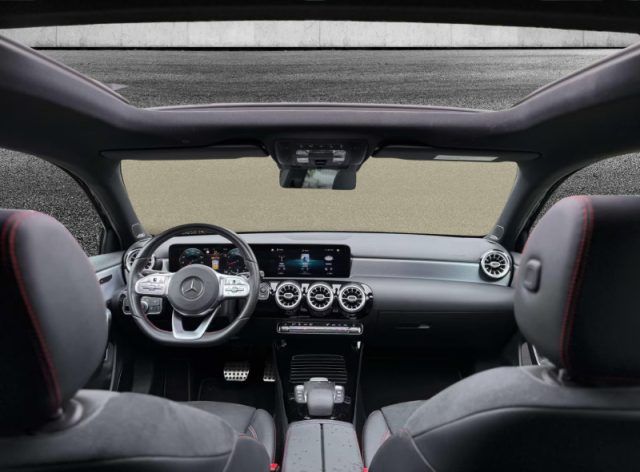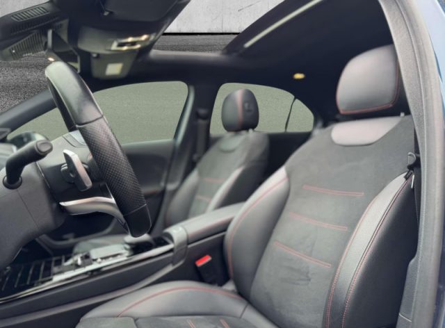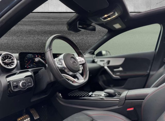 Rivestimenti in Artico e microfibra Dinamica neri, Chiave con transponder, Chiusura centralizzata, Immobilizzatore, Pretensionatore cinture, Volante regolabile, Indicatore temperatura esterna, Retrovisori elettrici, Vetri elettrici posteriori, ABS, Alzacristalli elettrici anteriori, Illuminazione vano bagagli, ASR, sistema anti-slittamento, Airbag per la testa, Bluetooth, Cofano motore attivo per sicurezza pedoni, Sistema di chiamata di emergenza aut. in caso di incidente (non necessita di telefono cell.), Selettore DYNAMIC SELECT con 4 programmi di marcia, ESP (Electronic stability program), Disattivazione automatica airbag lato passeggero, Airbag passeggero, Cofano motore attivo per sicurezza pedoni, Sedile guida reg. in altezza, Soglie di ingresso con scritta "Mercedes-Benz", Styling AMG, Appoggiatesta posteriori, Correttore assetto fari, Tempomat, Tappetini in velours sportivi AMG, Airbag laterali, Airbag conducente, Cielo in tessuto nero, Kneebag per il guidatore, Tergicristalli con sensore pioggia, Pacchetto Comfort per i sedili, Modulo LTE per l'utilizzo dei servizi Mercedes me connect, Brake Assist attivo (con avviso distanza e frenata autonoma), ADAPTIVE BRAKE con funzione HOLD, Cambio automatico a doppia frizione 7G-DCT con comandi al volante, Pacchetto Comfort, Schienali dei sedili posteriori ripiegabili, Sistema antisbandamento attivo, Sistema multimediale MBUX, Sterzo diretto, Vano portaoggetti, Reti portaoggetti sullo schienale dei sedili anteriori, Vano portaoggetti nella consolle centrale con avvolgibile, Visibility Light Pack, AMG Line Pack, Volante sportivo multifunzione in pelle nappa a tre razze, con pulsanti touch control, Alette parasole con deflettore estendibile, Sedili sportivi anteriori, Serbatoio maggiorato da 51 litri, Predisposizione per il car sharing, Climatizzatore automatico monozona, funzione di ricircolo, filtro per polveri sottili, Vano portaocchiali, Cerchi in lega sportivi AMG da 18" a 5 doppie razze con pneum. 225/45 R18 su 7,5 J x 18 ET 49, Autoradio digitale (DAB, DAB+ e DMB), Speed limit assist (sistema di rilevamento automatico del limite di velocità), Entry AMG Line Pack, Predisposizione per monitoraggio vettura (validità 3 anni), Sedile posteriore con schienale ad abbattimento frazio