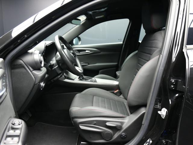 Di Serie: - 0X9 Coprimozzo Alfa Romeo Bianco e Nero - 0XF Adaptive Cruise Control con start&stop - 1GK Sistema Infotainment da 10.25" con navigazione, 2 porte USB, Bluetooth e comandi vocali - 3RV Lane Support System (Lane Departure Warning e Lane Keeping Assist) - 4CS Pedaliera e batticalcagno in alluminio - 508 Sensori di parcheggio anteriori e posteriori - 62Y Specchietti esterni richiudibili elettricamente - 9S8 AEB con riconoscimento pedone - 9U7 Luce abbagliante/anabbagliante automatica - CFW Sedile posteriore abbattibile 60/40 con ski pass e bracciolo poggiatesta centrale - GNK Specchietto retrovisore interno elettrocromico - GTF Specchietti retrovisori esterni riscaldabili - GX4 Keyless Go - GXP Passive Entry - HAD Climatizzatore automatico bizona - JTM Regolazione sedili manuale a 6 vie lato guidatore e passeggero - JY2 Cannocchiale cluster 12,3'' Full TFT - LNV Fari full led matrix adattivi e funzionalità dinamiche - LPM Fari posteriori full led con tecnologia Infinity Mirroring ed effetto 3D - NH1 Intelligent Adaptive Cruise Control - RFP Wireless Apple Car Play /Android Auto - RFX Wireless Charging Pad ventilato - RS3 Prese USB posteriori Type A+C - SCH Volante sportivo con inserti in pelle - WFL Cerchi in lega da 18'' diamantati nero lucido con pneumatici 235/50 - XA3 Telecamera posteriore con griglie dinamiche - Ambiente nero - Bluetooth - Body kit nero lucido con skidplate con inserti laterali e anteriori in tinta nero opaco - Bracciolo centrale - Bracciolo sedili anteriori - Calotte specchi nero lucide con dettaglio "tricolore" - Controllo automatico velocità - Lane departure warning (LDW) - Plancia con inserti in 3D - Regolazione lombare elettrica a 2 vie - Riconoscimento segnaletica stradale - Sedile guida regolabile in altezza - V Scudetto Nero opaco - Vetri elettrici posteriori - Volante regolabile