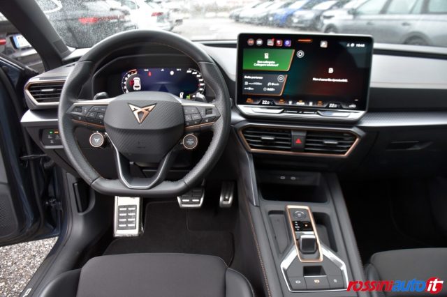 2 USB Tipo C anteriori e 2 posteriori, 7 airbag (2 frontali, 2 laterali, 2 tendina, 1 centrale), ABS (Sistema di frenata antibloccaggio), Alzacristalli elettrici anteriori e posteriori, Avvisatore acustico mancato allacciamento cintura di sicurezza, Battitacco portiere anteriori illuminato, Bocchette della ventilazione con dettagli in color rame, Bracciolo anteriore con portaoggetti integrato, Bracciolo posteriore, Cielo abitacolo nero, Climatronic tri-zona con sistema Air-care, Cornice finestrini in colore nero lucido, ACC Adaptive Cruise control, CUPRA Virtual Cockpit, DAB - Digital Audio Broadcasting, Doppio terminale di scarico visibile, Drive profile select, ESP (Controllo elettronico della stabilità), Fari fendinebbia LED con funzione cornering, Fari Full Led con indicatori di direzione dinamici, Freno di stazionamento elettrico, Front assist con sistema di frenata di emergenza e rilevamento pedoni e ciclisti, Full Link Wireless (funzione wireless disponibile con Apple CarPlay), Illuminazione ambientale a LED Smart Wraparound (cruscotto e portiere anteriori), Illuminazione Coast-to-coast con Welcome light (cerimonia di apertura e chiusura), Illuminazione interna a LED, Kessy Advanced (Sistema di avviamento senza chiave), Lane Assist (...
