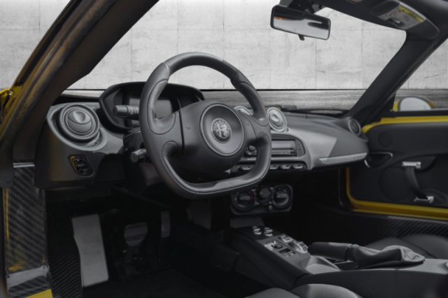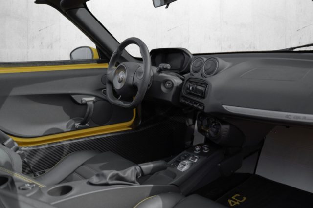Chiave con transponder, Correttore assetto fari, Immobilizzatore, Pretensionatore cinture, Sedile guida regolabile in altezza, Cruise control, Alzacristalli elettrici, Chiusura centralizzata con telecomando, Cambio sequenziale/automatico a doppia frizione TCT a 6 marce, Comandi cambio al volante, Doppio terminale di scarico, Sensori di parcheggio posteriori, ABS, ASR, CBC, Hill Holder, Airbag guidatore e passeggero, Alfa Hi-Fi Sound System, Autoradio CD/Mp3 con riconoscimento vocale e funzione di telefonia in viva voce, Car Care Kit, Climatizzatore a controllo manuale, Cup holder, Electronic stability control con Q2 elettronico, Fanali posteriori a led, Kit riparazione pneumatici, Kit tappeti con logo 4C con cuciture a contrasto, Mostrina in alluminio con incisione laser, Pedaliera e appoggiapiede in alluminio, Piastra appoggiapiede passeggero in alluminio, Pinze freno grigie, Predisposizione radio, Presa 12 volt, Quadro strumenti Full Digital con tecnologia TFT, Seconda chiave con telecomando, Selettore di guida Alfa D.N.A. evoluto con 4 modalità, Skid plate in alluminio anodizzato, Specchi esterni a regolazione elettrica, Specchi esterni con sbrinamento elettrico, Strumentazione evoluta, Telo coprivettura rosso personalizzato Alfa Romeo 4C, Tessuto nero con cuciture rosse, Tyre Pression Monitoring System (Sensore pressione pneumatici), Vano portaoggetti in pelle, Volante in pelle regolabile in altezza e profondità, Antifurto volumetrico antisollevamento, Fari Bi-Xenon sotto lente, Lavafari, Regolazione sedile passeggero, Regolazione sedile passeggero, Kit fumatori,