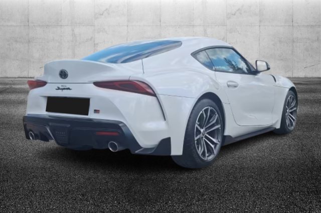 4 freni a disco autoventilanti, Palette del cambio al volante, Immobilizer, Illuminazione ambiente interno, Sedili sportivi, Sistema di monitoraggio pressione degli pneumatici (TPMS), Antenna DAB, Volante in pelle con comandi multifunzione, Portellone posteriore ad azionamento elettrico, Allarme, Controllo elettronico della stabilità (VSC), Differenziale a slittamento limitato ( LSD ) a gestione elettronica, Display multi-informazioni TFT a colori da 8,8", Doppio scarico sportivo, Drive Mode Select a 2 modalità (Normal, Sport), Fari fendinebbia posteriori Full-LED, Freno di stazionamento elettrico, Interruttore disinserimento controllo elettronico della stabilità, Luci posteriori Full-LED, Pedaliera sportiva, Retrovisori esterni riscaldabili e ripiegabili elettricamente, Sedili riscaldabili con supporto lombare regolabile elettricamente, Sensori di parcheggio anteriori e posteriori con frenata attiva, Sistema di navigazione satellitare con display da 8,8", Sospensioni adattive variabili (AVS), Toyota Supra Connect, Vernice Lightning Yellow, 8 Airbag SRS (frontali, laterali, tendina, ginocchia lato guida e passeggero), Cambio automatico 8 marce, Cinture di sicurezza con pretensionatore e limitatore di forza, Fari Full-LED, Toyota Supra Safety, Cerchi in lega forgiata anteriori da 18" con pneumatici 255/40 R18, Cerchi in lega forgiata posteriori da 18" con pneumatici 275/40 R18, Interni in Alcantara, Chiave con transponder, Chiusura centralizzata, Correttore assetto fari, Sedile guida regolabile in altezza, Bracciolo sedili anteriori, Indicatore temperatura esterna, Piantone dello sterzo collassabile, Smart Entry & Start System, Climatizzatore automatico bi-zona, Alzacristalli elettrici anteriori, Volante regolabile in altezza e profondità, Kit riparazione pneumatici, Luci diurne a LED, Telecamera posteriore di assistenza al parcheggio, Garanzia 3 anni o 100.000 km, Cinture di sicurezza posteriori a 3 punti di ancoraggio, Assistenza alla partenza in salita (HAC), ABS + EBD + BA, Autoradio, Interni in materiale pregiato, Cinture di sicurezza anteriori a 3 punti di ancoraggio, Retrovisori esterni regolabili elettricamente, Controllo della trazione (TRC), Sensore pioggia, Servosterzo elettrico ad assistenza variabile (EPS)