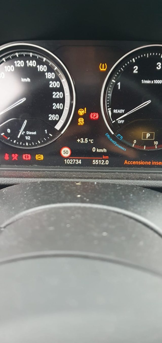Sistema Immobiliser, Assistente di attenzione alla guida, Brake Assist System (BAS), Funzione Follow-me-home regolabile tramite iDrive Controller, Kit attrezzi, Poggiatesta regolabili per prima e seconda fila di sedili, Porte posteriori con sistema di chiusura meccanica di sicurezza per bambini, Sedili per 5 passeggeri, Sistema di sicurezza passiva per pedoni, Speaker stereo con 6 altoparlanti: 2 mid ant., 2 mid post, 2 bassi centr., Telecomando ad onde radio per chiusura centralizzata, chiave fisica di sicurezza e accensione luci, Ugelli tergicristalli riscaldati, Radio Media con display 6.5", Bluetooth con audio-streaming, presa USB compatibile i-Pod, iDrive, Specchietti retrovisori esterni con calotta verniciata in tinta carrozzeria, Radio digitale DAB, Airbag laterali per guidatore e passeggero, BMW xDrive status (indicazioni per guida off road: inclinaz. vettura o ripartizione coppia), Controller iDrive nella consolle centrale con tasti per selezione diretta funzioni, Bracciolo anteriore e posteriore integrato nella portiera, Fari ant. con calotta di rifrazione: luci anabb. e diurne a LED, luci abbagl. e indic.direz. alogene, Presa elettrica da 12V nel vano portaoggetti anteriore, Chiave con transponder, Profili guidatore configurabili e memorizzabili, Computer di bordo, Sistema di chiusura centralizzata (p