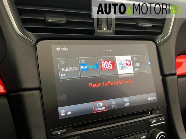 L?abitacolo con rivestimenti in pelle e finiture in acciaio esprime il tipico rigore costruttivo Porsche. Il sistema PCM con navigazione, connettività Apple CarPlay e impianto audio Bose assicurano comfort e tecnologia di alto livello.