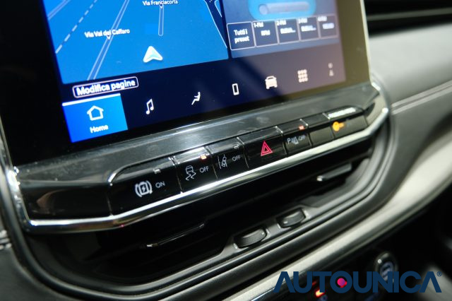 JEEP Compass 1.3 Turbo T4 240 CV PHEV AT6 4xe S è un SUV plug-in hybrid a trazione integrale pensato per offrire prestazioni, tecnologia e comfort di alto livello. Il sistema 4xe garantisce motricità e stabilità in ogni condizione, supportato da un pacchetto completo di assistenza alla guida che include ABS, ESP, controllo trazione, adaptive cruise control, mantenimento di corsia, frenata d?emergenza assistita, riconoscimento dei segnali stradali, sistema di avviso di distanza e sistema di riconoscimento della stanchezza. Gli interni si distinguono per qualità e comfort grazie ai rivestimenti in pelle, volante in pelle multifunzione, supporto lombare, bracciolo, climatizzatore automatico e leve al volante. La dotazione tecnologica è completa e moderna, con touch screen, sistema di navigazione, autoradio digitale, Bluetooth, USB, vivavoce, sound system e sistema di chiamata d?emergenza. All?esterno il design è valorizzato da cerchi in lega, fari full LED, fendinebbia, vetri oscurati e portellone posteriore elettrico. La praticità è garantita da Park Distance Control con sensori di parcheggio anteriori e posteriori, telecamera per parcheggio assistito, sensore di luce, chiusura centralizzata anche keyless, antifurto e ruotino di scorta. Una Compass completa e sofisticata, ideale per chi cerca un SUV moderno, potente e tecnologicamente avanzato.
