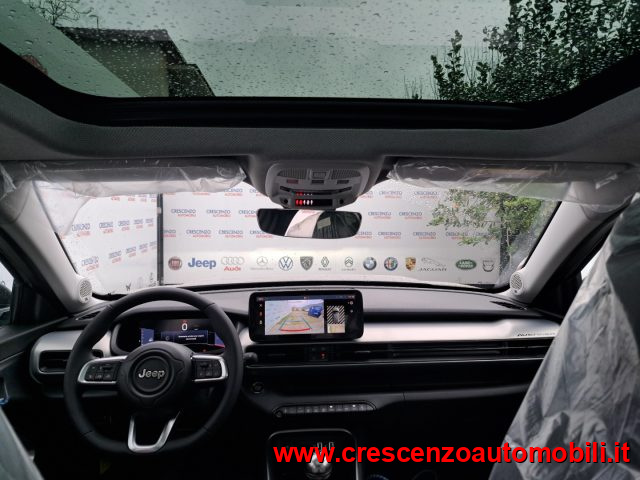 Vernice Bicolore - Tetto Panoramico Apribile - Abbaglianti automatici - Bracciolo del sedile anteriore con scomparto interno - Camera posteriore 180° con vista drone - Climatizzatore automatico - Sistema keyless start - Specchietti esterni riscaldabili e regolabili elettricamente - Specchietto retrovisore interno frameless elettrocromico - Tergicristalli con sensore pioggia - Luci interne a led - Volante premium Adaptive cruise control - Select terrain - Frenata di emergenza con rilevamento pedoni e ciclisti - Hill descent control hdc- sistema di controllo della velocità in discesa - Impianto audio con 6 altoparlanti - Porta usb posteriore tipo c - Quadro strumenti 10,25" full tft - Radio uconnect 10,25" - Servizi Connessi JEEP 10 anni di Connect ONE & 6 mesi di Connect PLUS - Retrovisore Elettrocromico - Bluetooth - Apple CarPlay - Android Auto - Sensore Pressione pneumatici - ABS - ESP - Hill Holder - Controllo trazione - Lane Assist - Freno a mano automatico - Airbag lato guida - Airbag passeggero - Airbag testa - Airbag laterali -Airbag laterali posteriori - Isofix;Allestimento Summit: Tappetini anteriori e posteriori in moquette - Cerchi in lega da 18'' - Welcome/ leaving lighting - Cristalli laterali posteriori e lunotto oscurati - Sistema di monitoraggio angolo cieco - Specchietti retrovisori esterni ripiegabili elettricamente - Fari posteriori a led - Ambient light interno multicolore personalizzabile - Proiettori anteriori full led - Griglia con trattamento gloss black - Caricabatterie wireless per smartphone - Summit version - Sensori di parcheggio anteriori e posterioriInfotainment & Convenience pack: Traffic sign information - Impianto audio premium jbl - Apertura keyless - Portellone ad azionamento automatico "hands free" -Radio uconnect 10,25" con navigatoreLeather & winter pack: Sedili in pelle nera con cuciture grigie - Parabrezza riscaldato nella zona tergicristalli - Sedile conducente regolabile elettricamente a 6 vie con regolazione lombare a 2 vie - Sedili anteriori riscaldabili