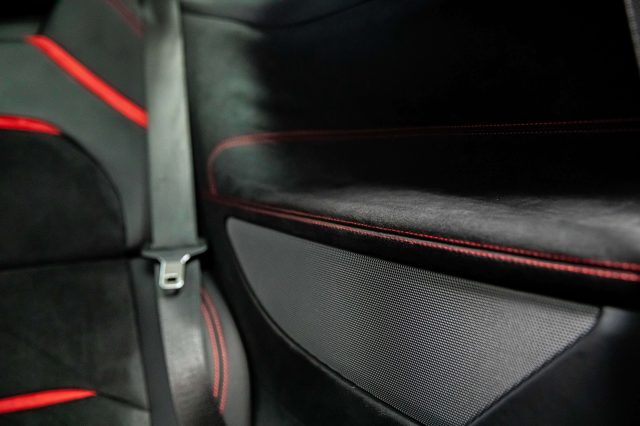 INTERNI: PELLE/ALCANTARA NERI CON INSERTI IN ROSSO
