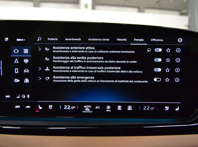 INTERNI IN PELLE TOTALE ESTESA MARRONE, SEDILI ANTERIORI SPORTIVI REGOLABILI ELETTRICAMENTE (QUELLO DI GUIDA CON MEMORIE) RISCALDABILI E VENTILATI, SUPPORTO LOMBARE, SEDILI POSTERIORI RISCALDABILI, CLIMATIZZATORE AUTOMATICO A 4 ZONE, VOLANTE SPORTIVO MULTIFUNZIONE CON TOUCH CONTROL IN PELLE RAZZE DOPPIE CON PARTE SUPERIORE E INFERIORE APPIATTITE E RISCALDABILE, PADDLES, ADAPTIVE CRUISE CONTROL, INSERTI IN ALLUMINIO TANGENT OTTONE ANTRACITE, PACCHETTO LUCI AMBIENTE PLUS, ISOFIX POSTERIORE E SUL SEDILE PASSEGGERO ANTERIORE, DISPLAY PASSEGGERO TOUCH SCREEN, NAVIGATORE CARTOGRAFICO CON SCHERMO TOUCH SCREEN, USCITA USB, RADIO DAB, BLUETOOTH, APPLE CARPLAY E ANDROID AUTO, PHONE BOX (CARICA TELEFONO SENZA FILI), DRIVE SELECT, AVVERTENZA STANCHEZZA, DISTRAZIONE, DISTANZA, CAMBIO E USCITA CORSIA, SENSORE LUCI E PIOGGIA, SPECCHI RETROVISORI ESTERNI RIPIEGABILI ELETTRICAMENTE, PORTELLONE POSTERIORE ELETTRICO CON APERTURA A SENSORE DEL PIEDE, KEYLESS GO, CHIUSURA PORTE SERVOASSISTITE, VETRI POSTERIORI PRIVACY, PACCHETTO LOOK NERO, SENSORI PARCHEGGIO ANTERIORI E POSTERIORI, 360° CAMERA, FARI LED MATRIX CON FRECCE ANTERIORI E POSTERIORI DINAMICHE, DOPPIO SET DI TAPPETI IN GOMMA E TESSUTO, 4 RUOTE STERZANTI, CERCHI IN LEGA DA 20" AUDI SPORT CON DESIGN A 5 RAZZE PEAK NERO METALLIZZATO TORNITI LUCIDI.