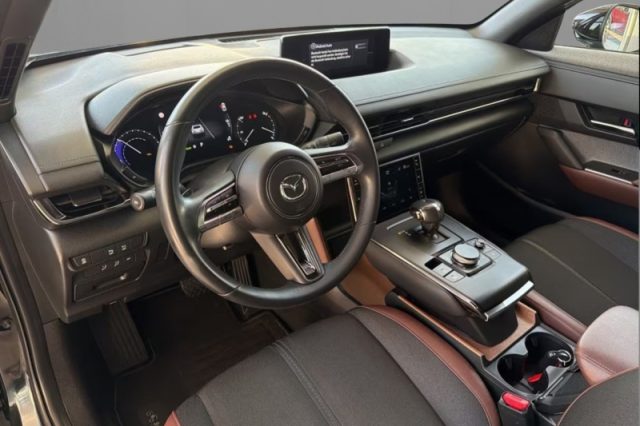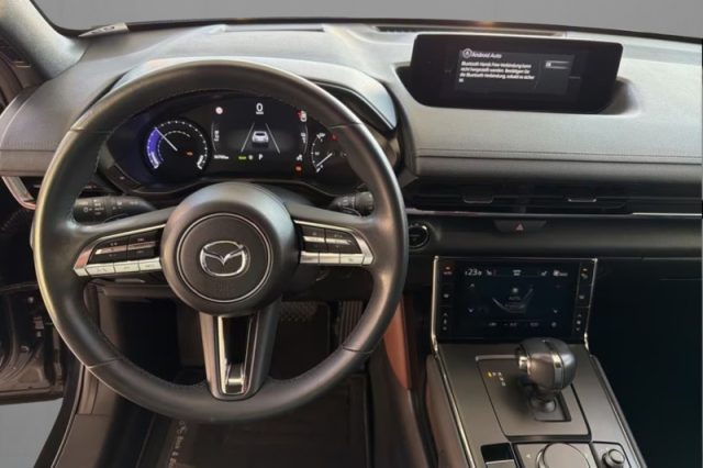 Vetri posteriori scuri, HMI Commander, Videocamera posteriore, ABS, Controllo elettronico della trazione, Sensore luci, Bluetooth, Bracciolo centrale anteriore, Fari posteriori a LED, Hill Hold Assist (assistente alla partenza in salita), Retrovisori esterni ripiegabili elettricamente, Airbag laterali (guidatore e passeggero), Sedili anteriori riscaldabili elettricamente, Sensori di parcheggio anteriori e posteriori, Sistema rilevazione stanchezza guidatore (DAA), Bracciolo centrale posteriore, Lavafari ad alta pressione, Retrovisori esterni riscaldabili e regolabili elettricamente, Volante multifunzione rivestito in pelle, Sistema di monitoraggio angoli ciechi (BSM) + Rear Cross Trafic Alarm, Sistema intelligente di frenata in città (SCBS) con rilevamento pedoni (Pedestrian AEB), Airbag guida, Airbag passeggero, Alette parasole guidatore e passeggero anter. con specchietti illuminati, G-Vectoring Control (GVC), Vetri elettrici anteriori, Tetto apribile elettricamente, DSC (Controllo elettronico stabilità), Cerchi in lega da 18" cromati, Head-up Display - proiezione informazioni sul parabrezza, Sbrinatore parabrezza anteriore, Sistema riconoscimento segnali stradali (TSR), Chiusura centralizzata con telecomando e chiusura automatica in movimento (ADL), Interfacce Apple CarPlay - Android Auto, Retrovisore interno fotocromatico di tipo Frameless, Volante riscaldabile elettricamente, Cruise control adattivo (MRCC) con funzioni Full Speed e Intelligent Speed Assist, Sistema di chiamata di emergenza e-Call, Funzione Cruise and Traffic System (CTS), Sistema di frenata di emergenza posteriore in uscita parcheggio (RCTB), Sistema di rilevazione pericolo uscita parcheggio anteriore (FCTA), Memorizzazione regolaz. elettriche sedile gidatore, HUD e retrovisori esterni, Illuminazione interna a LED, Sistema di mantenimento della carreggiata (LAS), Controllo automatico degli abbaglianti (HBC), Sistema intelligente di frenata in città posteriore (Rear SCBS), Strumentazione centrale digitale con display da 7", 2xUSB, Cambio automatico, Cavo di ricarica domestica Mode 2 Type 2 (per ricarica con presa casalinga), Cavo di ricarica Mode 2 Type 3 (per ricarica con wallbox e colonnine), Fari diurni a Led, Fari Led a matrice (ALH), Impianto audio Mazda Harmonic Acoustics con radio digitale DAB, Mazda Connect con display centrale a grafica TFT a colori da 8,8", Navigatore satellitare, Plancia centrale con comandi a sfioro, Rivestimenti interni "Modern Confidence" o "Industrial Vint