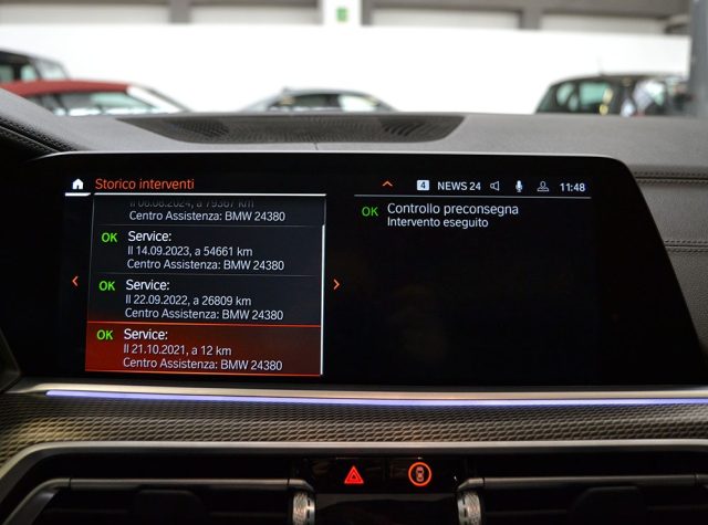 INTERNI IN PELLE TOTALE NERA COMPRESI CRUSCOTTO E PANNELLI PORTE, SEDILI ANTERIORI REGOLABILI ELETTRICAMENTE ( QUELLO DI GUIDA CON MEMORIE ) E RISCALDABILI, VOLANTE IN PELLE SPORTIVO M MULTIFUNZIONE CON PADDLES E REGOLABILE ELETTRICAMENTE, ADAPTIVE CRUISE CONTROL, DIGITAL COCKPIT, CLIMATIZZATORE AUTOMATICO BI-ZONA, DRIVE SELECT CON IMPOSTAZIONE SOUND MOTORE, ISOFIX, NAVIGATORE CARTOGRAFICO 16/9 CON USCITA USB, RADIO DAB, BLUETOOTH, APPLE CARPLAY E ANDROID AUTO, SCREEN MIRRORING, HARMAN KARDON SOUND SYSTEM, AMBIENT LIGHT CON POSSIBILITA' CAMBIO COLORE, BATTITACCO CON LOGO M LUMINOSO, PEDALIERA SPORTIVA, ANTIFURTO, AVVISO COLLISIONE E ABBANDONO CORSIA, RICONOSCIMENTO SEGNALI STRADALI, TETTO PANORAMICO APRIBILE, KEYLESS GO ( APERTURA/CHIUSURA PORTE E ACCENSIONE MOTORE SENZA CHIAVE ), VETRI POSTERIORI PRIVACY, PORTELLONE POSTERIORE ELETTRICO CON APERTURA A SENSORE DEL PIEDE, BLACK LINE SHADOW ESTERNA, SENSORE LUCI E PIOGGIA, SPECCHI RETROVISORI ESTERNI RIPIEGABILI ELETTRICAMENTE, SENSORI PARCHEGGIO ANTERIORI E POSTERIORI, 360° CAMERA, FARI LED, CERCHI IN LEGA DA 21", PINZE DEI FRENI M BLU.