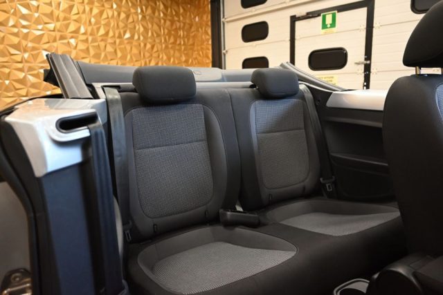 ARGENTO METALLICO (ELEGANTISSIMO), INTERNI SPORTIVI TESSUTO NERO, CAMBIO MANUALE 6M, PACCHETTO SPORT DESIGN COMPLETO CHE COMPRENDE: (Cerchi in lega da 17? Sport, Cruise Control, KIT 8 altoparlanti, Fari fendinebbia, Volante, pomello del cambio e impugnatura freno a mano in pelle, ABS, ASR, EDS, MSR, Rollbar e programma elettronico della stabilità, Bracciolo centrale anteriore, Capote elettrica in tessuto con copertura, Maniglie e specchietti retrovisori esterni in colore carrozzeria, ABS, ASR, EDS, ESP e MSR, Climatizzatore, Fari fendinebbia, Maniglie e specchietti retrovisori esterni in colore carrozzeria, Volante, pomello del cambio e impugnatura freno a mano in pelle, Rivestimento sedili in stoffa, motivo "Design", 2 appoggiatesta post., Accesso facilitato "Easy Entry", Appoggiatesta anteriori ottimizzati per la sicurezza, Cassetto portaoggetti con serratura, Dash Pad nel colore carrozzeria, Divano post. non sdoppiabile, 2 posti, schienale divis. e ribalt. simmet., Impugnatura leva freno a mano in pelle, Pedaliera "standard", Pomello della leva cambio in pelle, Rivestimento porte e pannelli laterali, Sedile anteriore destro comfort, Sedile anteriore sinistro comfort, Sedili anteriori con regolazione in altezza, Servosterzo elettromeccanico regolato in funzione della velocità, Supporti lombari anteriori, Supporto per borsa di pronto soccorso e triangolo di emergenza, Tappetini anteriori e posteriori in tessuto, Tappeto in Dilour senza protezione battiscarpa, Tasche portaoggetti agli schienali dei sedili anteriori, Vano portaoggetti nel Maggiolino, Vettura con guida a sinistra, Volante in pelle 3 razze), + NAVIGATORE CARTOGRAFICO,