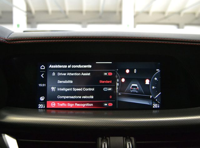 INTERNI IN PELLE PREGIATA NERA CON CUCITURE ROSSE INCLUSO PLANCIA, PANNELLI PORTE E LEVA DEL CAMBIO, SEDILI SPORTIVI ELETTRICI (QUELLO DI GUIDA CON MEMORIE), RISCALDABILI CON REGOLAZIONE LOMBARE, VOLANTE SPORTIVO IN PELLE MULTIFUNZIONE CON PADDLES E CORONA RISCALDABILE, QUADRO DIGITALE, ISOFIX, DNA MODE SELECT, NAVIGATORE CARTOGRAFICO 16/9 CON SCHERMO TOUCH SCREEN, SISTEMA ANDROID, APPLE CAR PLAY, SOUND SYSTEM/HARMAN KARDON, USB E AUX, BLUETOOTH, RADIO DAB, PHONE BOX, CLIMATIZZATORE AUTOMATICO BI-ZONA, PACK DRIVER ASSISTANCE PLUS (CRUISE CONTROL ADATTIVO CON CONTROLLO DELLA VELOCITA' INTELLIGENTE, LETTORE SEGNALI STRADALI, SISTEMA DI CONTROLLO ATTENZIONE E AVVISO DI SUPERAMENTO DELLA CORSIA), FORWOARD COLLISION WARNING, KEYLESS GO (APERTURA/CHIUSURA E ACCENSIONE SENZA CHIAVE), SPECCHIETTI RIPIEGHEVOLI ELETTRICAMENTE, PORTELLONE ELETTRICO CON FUNZIONE HANDS-FREE, VETRI POSTERIORI OSCURATI, SENSORE LUCI E PIOGGIA, SPECCHIO RETROVISORE INTERNO AUTOANABBAGLIANTE, FARI A LED, SENSORI DI PARCHEGGIO ANTERIORI E POSTERIORI, RETROCAMERA, PACCHETTO NERO LUCIDO ESTERNO, CERCHI DA 21", PINZE ROSSE.