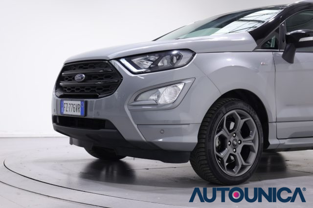 FORD EcoSport 1.5 ECOBLUE 95 CV START&STOP ST-LINE del 2020. Questa vettura, ideale anche per neopatentati, è dotata di un allestimento completo che include ABS, Airbag, Airbag laterali, Airbag testa, Alzacristalli elettrici, Antifurto, Autoradio, Autoradio digitale, Bluetooth, Boardcomputer, Bracciolo, Cerchi in lega, Chiusura centralizzata, Chiusura centralizzata telecomandata, Climatizzatore, Controllo trazione, Cruise Control, ESP, Fari LED, Fendinebbia, Frenata d'emergenza assistita, Immobilizzatore elettronico, Interni in pelle, Isofix, Limitatore di velocità, Luci diurne, Riconoscimento dei segnali stradali, Sensore di luce, Sensore di pioggia, Sensori di parcheggio anteriori, Sensori di parcheggio posteriori, Servosterzo, Specchietti laterali elettrici, Start/Stop Automatico, Telecamera per parcheggio assistito, Touch screen, USB, Vivavoce e Volante multifunzione. L'auto è disponibile per la visione e un test drive presso la nostra concessionaria. Per ulteriori dettagli sul prezzo o per fissare un appuntamento, non esitate a contattarci.