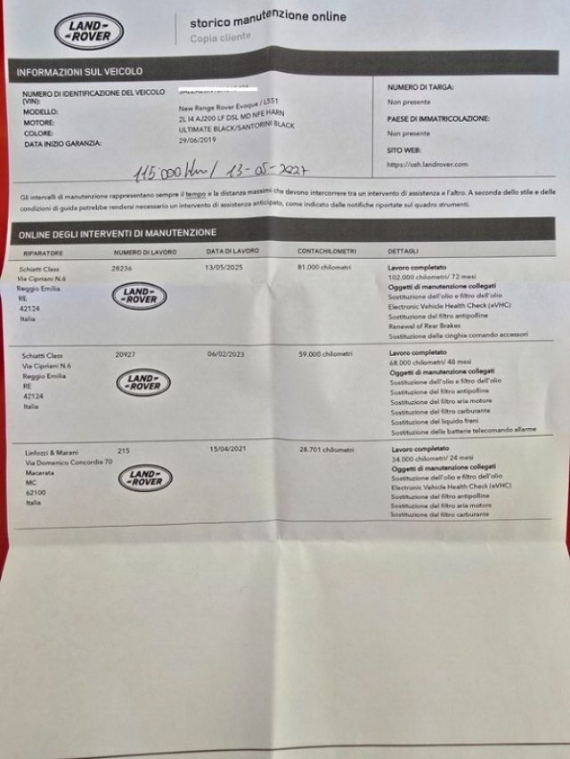 AUTO SEMPRE E SOLO TAGLIANDATA LAND ROVER