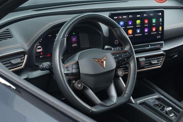 Pacchetto Freni Brembo per CUPRA, Fari a Led con Abbaglianti Automatici e Luci Diurne, Lane Assist-Controllo Elettronico della Corsia, Front Assist-frenata d'emergenza Assistita, Side Assist-Monitoraggio Angolo Cieco, Adaptive Cruise Control con Sistema di Avviso di Distanza, Riconoscimento della Segnaletica Stradale, Keyless, Park Distance Control con Sensori di Parcheggio a 360° e Retrocamera, Sistema di Parcheggio Automatico, Sedili Sportivi in Pelle/Tessuto Riscaldabili con Supporto Lombare, Carica Wireless per Smartphone, Leve Cambio al Volante, Portellone Elettrico con Pedaliera Virtuale, Volante Sportivo Riscaldabile in Pelle Multifunzione, Android Auto e Apple CarPlay, Dab, Controllo Vocale, Luce d'ambiente, Start&Stop, Spoiler, ecc...