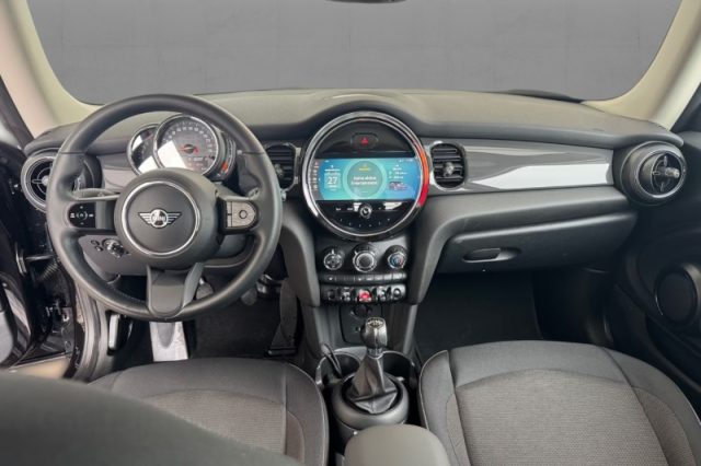 Side Scuttles in nero opaco con indicatori di direzione integrati, Superfici interne in plastica nera, Comandi multifunzione al volante, Interfaccia Bluetooth con funzione streaming, MINI controller, Radio MINI con display 6,5" a colori, Radio digitale DAB, 2 Airbag frontali + 2 airbag laterali + 2 airbag laterali per la testa, Crash sensor (sblocco automatico chiusura portiere in caso di incidente), Servosterzo elettromeccanico EPAS (Electric Power Assisted Steering), Bulloni antifurto per cerchi, Tachimetro e contagiri dietro al volante con indicatore di temperatura esterna, velocità, ora e dat, Chiave con transponder, Tergilunotto, Appoggiatesta posteriori, ABS + EBD + CBC, Funzione "Follow-me home", Cambio manuale a 6 marce, Cinture di sicurezza con pretensionatori pirotecnici, Condition Based Service (indicatore prossimità intervento manutenzione), Kit pronto soccorso, DSC III, Controllo dinamico della stabilità (incl. ASC+T), 2 alette parasole anteriori con specchietto di cortesia, Cornici cromate dei fari anteriori e delle luci posteriori, Luci di cortesia anteriori, Luci nel vano bagagli, Brake Energy Regeneration, Fari alogeni anabbaglianti ed abbaglianti con regolazione elettrica dell'altezza, Chiusura centralizzata con telecomando nella chiave, Lavatergifari, Volante sportivo in pelle a 3 razze regolabile in altezza e profondità, Indicatori di direzione bianchi, Doppia chiave con comandi a distanza con funzione di memoria delle impostazioni del veicolo, Colour Line Carbon Black, Garanzia estesa Best 4 Mini, 2 portabicchieri nella consolle centrale e 1 posteriore, Alzacristalli elettrici anteriori, Attacchi ISOFIX su entrambi i sedili posteriori, Climatizzatore manuale, Computer di bordo, Divano posteriore abbattibile sdoppiato 60:40, Immobilizzatore elettronico, Indicatore di pressione pneumatici, Keyless GO (avviamento vettura senza chiave), MINI LED Ring intorno al display centrale, Pannelli interni in Carbon Black, Retrovisori esterni con specchi asferici e regolabili elettricamente, Retrovisori esterni e getti lavavetro riscaldabili, Rivestimento del padiglione in Satellite Grey, Sedile guida regolabile in altezza con funzione "Memory", Sensore luci e pioggia, Servotronic, Start/Stop automatico, Tetto in tinta carrozzeria, Griglia anteriore con cornice cromata e listelli orizzontali del radiator