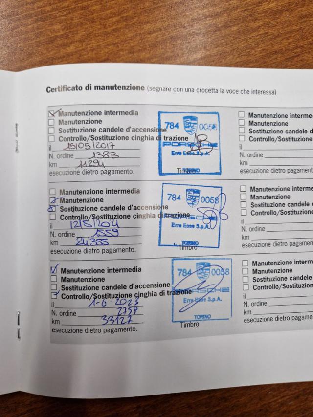 KM. 41.657 TAGLIANDATI E CERTIFICATI PRESSO LA CONCESSIONARIA PORSCHE ''ERRE ESSE'' DI TORINO E RIPORTATI SUL LIBRETTO SERVICE ORIGINALE