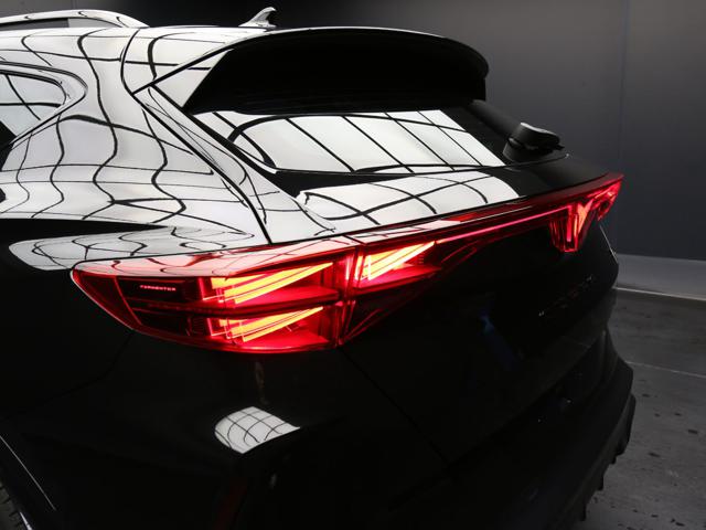 Di Serie: - 1G8 Kit di riparazione pneumatici - 2PZ Volante multifunzione racing in pelle riscaldato con leve del cambio integrate - 3GN Concezione variabile del fondo vano di carico - 3NU Sedili posteriori abbattibili - 4A3 Riscaldamento sedili anteriori, regolabile separatamente - 4E6 Portellone elettrico con sistema "handsfree" - 4K5 Keyless Advance (sistema di accesso senza chiave) - 6E3 Bracciolo anteriore e posteriore - 7AL Sistema antifurto - 8G1 Light assist (dispositivo di assistenza abbaglianti) - 8IY Fari Full LED anteriori con firma luminosa triangolare - 8J3 Front assist con sistema di frenata di emergenza e rilevamento pedoni e ciclisti 8N6 Sensori luci e pioggia - 8Q3 Regolazione profondità luce dei proiettori, automatica dinamica (avviene durante la marcia) - 8T3 Regolazione automatica della distanza - 8VM Illuminazione posteriore Full LED con logo illuminato incorporato nel gruppo ottico - 9WJ Full Link Wireless con Apple CarPlay e Android Auto - C8H Cerchi in lega da 19" SANDSTORM silver - KH7 Climatronic tri-zona - Q1D Sedili anteriori sportivi - QH1 Comando vocale - QR9 Traffic Sign Recognition (riconoscimento dei segnali stradali) - QV3 DAB (Digital Audio Broadcasting) - U9C 4 USB tipo C nella fila anteriore e 2 nella fila posteriore (fila posteriore solo per ricarica) - ACC Predittivo (Adaptive Cruise Control) - CUPRA Virtual Cockpit 10,25" - Dashboard con design parametrico 3D e cuciture a contrasto in colore copper - Drive Profile - Illuminazione ambientale Smart Wraparound - Mancorrenti al tetto e cornici finestrini nero lucido - Sensori di parcheggio anteriori e posteriori - Sistema di infotainment con display touch da 12,9": 8RT Altoparlanti, anteriori e posteriori (6), Display touch da 12,9", Radio, Riconoscimento vocale - Vetri posteriori oscurati - Welcome light (proiezione logo "CUPRA" sotto gli specchietti retrovisori esterni) - XDS (Sistema differenziale elettronico).