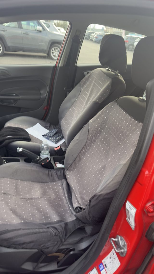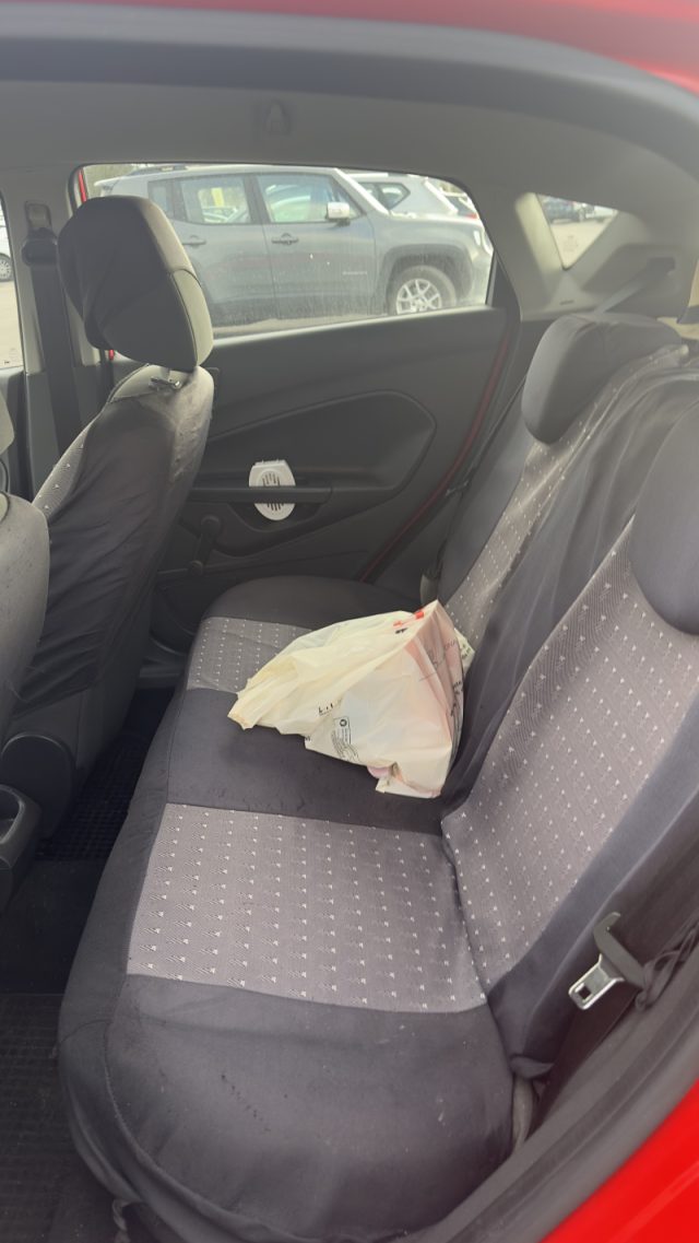 Airbag a tendina anteriori e posteriori, Sedili posteriori abbattibili 60/40, ABS (Sistema antibloccaggio in frenata), EBA (Assistenza alla frenata di emergenza), Servosterzo elettrico assistito (EPAS), Vernice standard, Airbag frontale/laterale lato guidatore e passeggero, Alzacristalli anteriori elettrici "one-touch" salita e discesa (lato conducente), Attacchi di sicurezza Isofix integrati nei sedili posteriori esterni, Bracciolo guidatore anteriore con vano portaoggetti, Cellula di sicurezza in acciaio ad alta resistenza, Cerchi in lega 15", Chiusura centralizzata con 2 telecomandi e chiave a scomparsa, Chiusura meccanica di sicurezza per bambini, Cinture di sicurezza ant. reg. in altezza con riavvolgitore inerziale e pretensionatori, Cinture di sicurezza posteriori (tre) a tre punti di ancoraggio, Climatizzatore a controllo manuale, EBD (Distribuzione automatica della frenata), ESP (Controllo elettronico della stabilità), Fari fendinebbia anteriori, Ford ECOmode - Sistema di guida ecosostenibile, Freno a mano in pelle, Griglia anteriore superiore cromata, Griglia inferiore cromata, Illuminazione interna "red ambient" a diffusione ambientale, Indicatore cambio di marcia, Interni in tessuto, Interruttore PADI - disattivazione airbag passeggero anteriore, Leva del freno a mano in pelle, Linea di cintura cromata, Luci di cortesia integrate nei retrovisori esterni, Luci di cortesia vettura e bagagliaio, Maniglie portiere e portellone in tinta carrozzeria, My Ford Key (possibilità di programmare una chiave personalizzando i settaggi), Nuova console comandi alzacristalli elettrici integrata nella portiera lato guida, Pomello del cambio rivestito in pelle, Proiettori alogeni con luci diurne a LED, Retrovisori elettrici/riscaldabili in tinta carrozzeria e con indicatori di direzione integrati, Sedile guida regolabile a 4 vie (in altezza e profondità), Sedili anteriori anti-scivolamento, Segnalatore acustico mancato inserimento cinture di sicurezza anteriori, Sistema monitoraggio pressione pneumatici (TPMS), Tappetini anteriori, TCS (Controllo della trazione), Tunnel centrale anteriore con vano portabevande e presa 12V, Volante ergonomico in pelle regolabile in altezza e profondità, Assistenza alla partenza in salita HLA, Fari posteriori a LED, Nuova console centrale Black Design, Chiave con transponder, Correttore assetto fari, Tergilunotto, Appoggiatesta posteriori, Cambio manuale a 5 marce, Paraurti in tinta carrozzeria, Sistema antincendio FIS, Antifurto passivo immobilizer PATS, Zone anteriori e posteriori ad assorbimento dell'energia d'urto e deformazione controllata, Kit riparazione pneumatici, Easy Fuel (Sistema di rifornimento senza tappo), Airbag ginocchia guidatore, Fari "Follow me home" (a spegnimento ritardato), Pedaliera e piantone dello sterzo collassabili, Indicatore temperatura esterna, Computer di bordo
