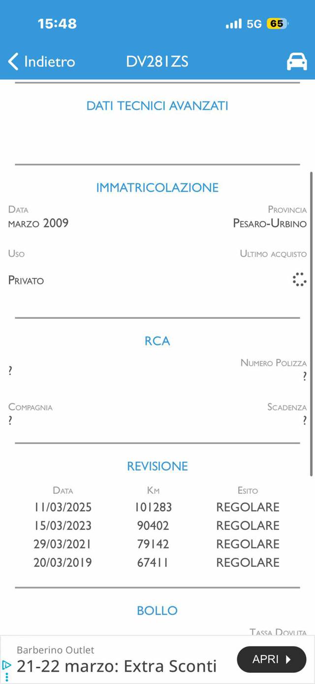LA VETTURA VERRA CONSEGNATA CON TAGLLIANDO COMPLETO DI CINGHIA DISTRIBUZIONE