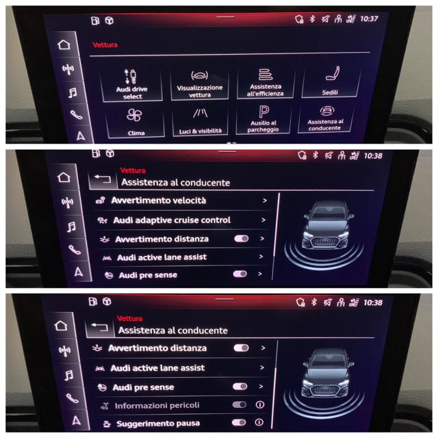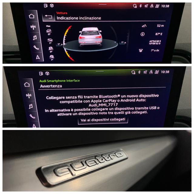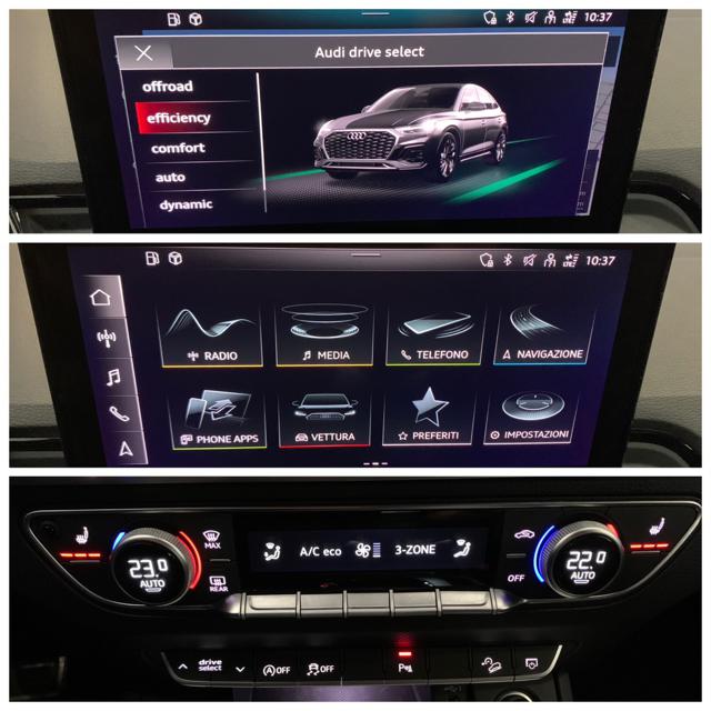/////LUCI DIURNE A LED////FARI FULL LED////VOLANTE MULTIFUNZIONE////ADAPTIVE CRUISE CONTROL////AVVERTIMENTO DISTANZA////AVVERTIMENTO DISTANZA////AUDI ACTIVE LANE ASSIST////AUDI PRE SENSE////AUDI DRIVE SELECT OFFROAD-EFFICIENCY-COMFORT-AUTO-DYNAMIC////TELECAMERA POSTERIORE////NAVIGATORE SATELLITARE/////BLUETOOTH////INTERNI IN PELLE NERA////PORTELLONE POSTERIORE ELETTRICO////