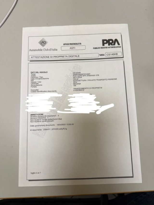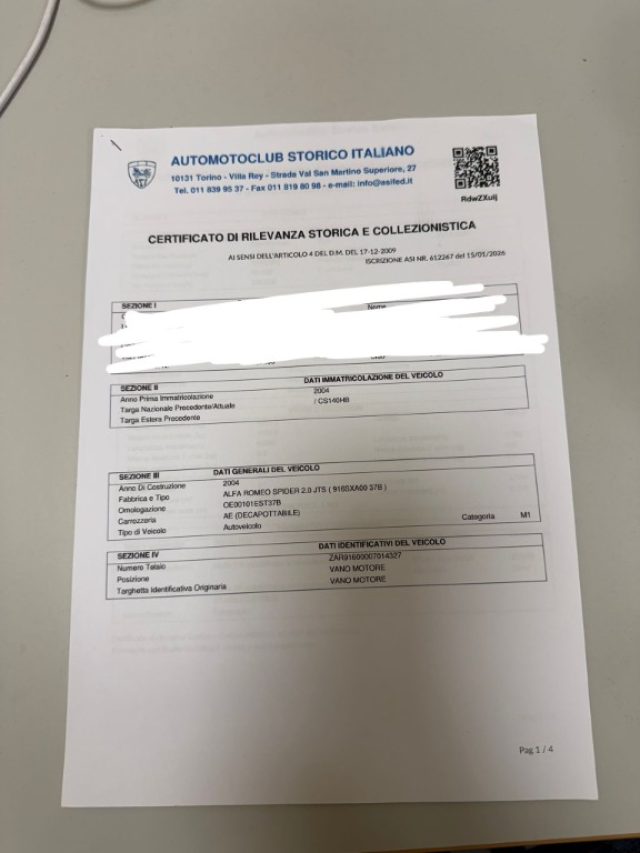 VETTURA ASI // ESENTE DA BOLLO // ANNO 2004