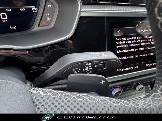 Audi drive select, Paraurti S line in verniciatura integrale (colore della carrozzeria), Volante in pelle con profilo sportivo a 3 razze appiattito nella parte inferiore multifunzionale plus con bilancieri, Sedili anteriori con regolazione manuale, Mancorrenti del tetto neri, Riscaldamento dei sedili anteriori, Vetro atermico parabrezza, Chiave comfort senza SAFELOCK, Pacchetto Estetico Nero plus, Cerchi Audi Sport design a 5 razze a V a stella Grigio Titanio Opaco torniti lucidi 8,5J x 20 pneumatici 255/40 R20, Divano posteriore plus con bracciolo centrale e portabevande, Inserto decorativo in Alluminio Opaco Spazzolato Scuro, Gusci degli specchietti esterni neri, Avviso di abbandono corsia, Audi pre sense front per sistema di regolazione automatica della velocità, Specchietti esterni regolabili riscaldati e ripiegabili elettricamente con funzione automatica antiabbagliamento su entrambi i lati, Supporto lombare a 4 vie per i sedili anteriori, Sistema di navigazione MMI plus con MMI touch, Audi pre sense basic, Sistema di controllo per il parcheggio plus, Avviso di cambio corsia, Fari a LED, Sensore luminosità e pioggia, Fanali di coda a LED plus, Audi virtual cockpit plus, Audi phone box light, Audi connect Remote & Control (per sistema di navigazione MMI plus), Superfici decorative nero lucido, Sistema di navigazione e infotainment Audi connect plus, Retrocamera, Climatizzazione comfort a 3 zone, Combinazione tessuto "Puls"/similpelle mono.pur 550 con stampigliatura S, Sedili sportivi anteriori, Vetro parasole oscurato, Pacchetto luci ambiente plus, Assistente alla partenza, Audi smartphone interface, Pedaliera e poggiapiedi in acciaio inox, Listelli sottoporta con inserti in alluminio anteriori illuminati con scritta S km 18.541