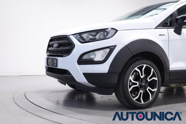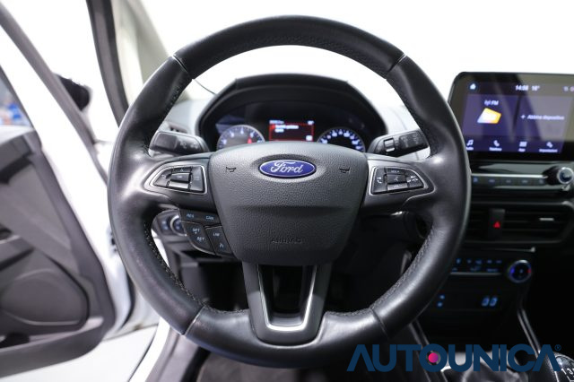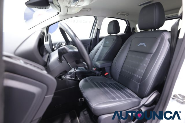 Ford EcoSport 1.0 EcoBoost 125 CV Start&Stop Active del 2022, un SUV compatto dall'anima versatile e dall'assetto rialzato tipico dell'allestimento Active, ideale per chi cerca una guida sicura e confortevole anche per i neopatentati. La vettura si distingue per un abitacolo curato con interni in pelle, volante in pelle multifunzione, bracciolo centrale e climatizzatore a controllo automatico che assicura il massimo benessere a bordo in ogni stagione. La tecnologia è protagonista grazie al sistema infotainment con touch screen, autoradio digitale, bluetooth, vivavoce e presa USB, supportati dal boardcomputer per la gestione di tutte le informazioni di viaggio. La sicurezza alla guida è garantita da sistemi avanzati come la frenata d'emergenza assistita, il riconoscimento dei segnali stradali, il cruise control con limitatore di velocità e un set completo di airbag frontali, laterali e per la testa. Le manovre sono facilitate dai sensori di parcheggio posteriori, mentre la visibilità è ottimizzata dai fari a LED, luci diurne, fendinebbia e dai sensori automatici di luce e pioggia. Completano la dotazione i cerchi in lega specifici, gli specchietti laterali regolabili elettricamente, il sistema Start/Stop automatico per l'efficienza dei consumi e gli attacchi Isofix per la massima protezione dei più piccoli. Una vettura robusta e moderna, pronta a offrire agilità urbana e solidità nei lunghi percorsi.