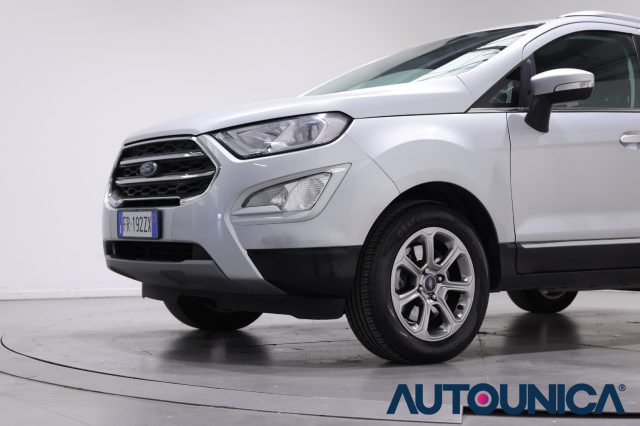 Ford EcoSport 1.5 TDCi 100 CV Start&Stop Plus del 2018, un SUV compatto e versatile che unisce la solidità di un crossover alla massima efficienza nei consumi, risultando perfetto anche per i neopatentati. Questo modello si distingue per una dotazione completa orientata al comfort e alla facilità di guida, grazie al controllo automatico del clima, al servosterzo e al volante multifunzione che permette di gestire ogni comando in totale sicurezza. La tecnologia di bordo è all'avanguardia con il sistema di navigazione integrato su touch screen, autoradio digitale, bluetooth, vivavoce e boardcomputer. Sul fronte della sicurezza, la vettura è equipaggiata con i più moderni sistemi di assistenza come la frenata d'emergenza assistita, il cruise control con limitatore di velocità, l'ABS, l'ESP e il controllo della trazione, oltre a un set completo di airbag frontali, laterali e per la testa. L'estetica è valorizzata dai cerchi in lega, dai fari a LED con luci diurne e dai fendinebbia, mentre la praticità quotidiana è garantita dai sensori di luce per l'accensione automatica dei fari, dagli specchietti laterali regolabili elettricamente e dal sistema Start/Stop automatico. Completano l'allestimento l'antifurto con immobilizzatore elettronico, la chiusura centralizzata telecomandata e gli attacchi Isofix per la massima protezione dei passeggeri più piccoli. Una soluzione ideale per chi cerca una guida rialzata, sicurezza e bassi costi di gestione.